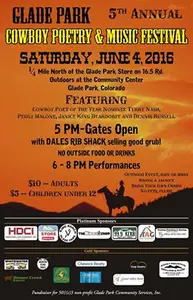 Come and Join the FUN! The 7th Annual Glade Park Cowboy Music & Poetry Festival will be held Saturday August 4th. This Festival brings the Old West