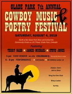 It is that time again for Music, Poetry and FUN! The Glade Park 8th Annual Cowboy Music and Poetry Festival will be held this year on Saturday, August