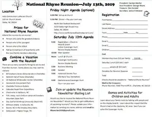 The National Rhyne Reunion is being held on July 13, 2019 in Dallas, NC. All Rhyne's are invited. You can also sign up for the free Rhyne Reunion Newsletter