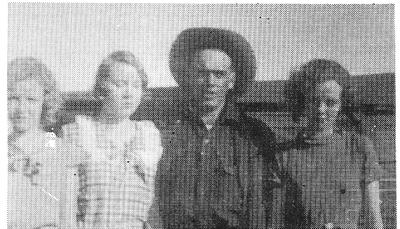 Although many did manage to escape the falling rock, Jack Blasdel was the only one to actually survive the rock slide. Jack Blasdel was trapped from going over the slide when the rocks pinned him, leaving him laying off the side of the cliff with rocks laying on his legs. But it was the same rocks that saved his life, and kept him from going over the cliff that crippled him. He was from Glade Park. Jack is shown here with girls; Maxine, Vera (who became his wife), Jack, and Billie.
