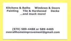I specialize in kitchen and bath remodels, decks, painting, and the installation of windows, doors, tile and hardwood flooring. However, I can do many other things as well! Thank you!